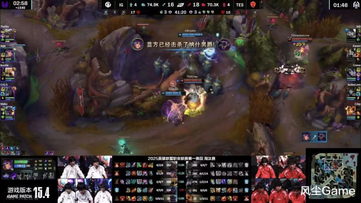 第二场比赛,是淘汰赛的焦点之战,流量网红队TES和IG,继德玛西亚杯之后,再次交手,这场比赛开打之前,小天曾在JKL直播时,私信他要小心IG,不少观众都误以为,IG训练赛乱杀WBG,滔搏哥可能真的有点危险,但没想到比赛开打之后,全神班从教练到选手,发挥都不正常。